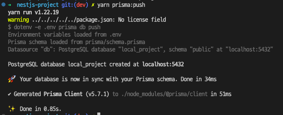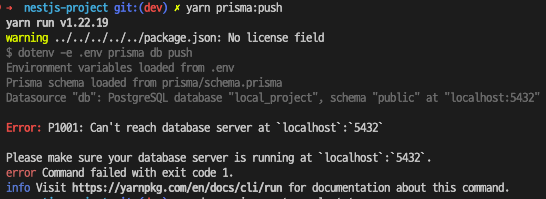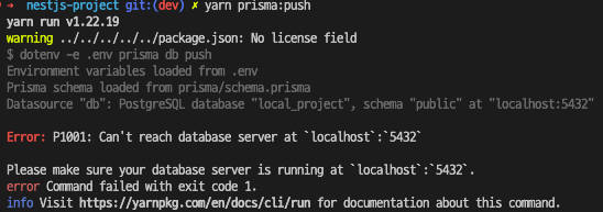 ➜ nestjs-project git:(dev) ✗ yarn prisma:push