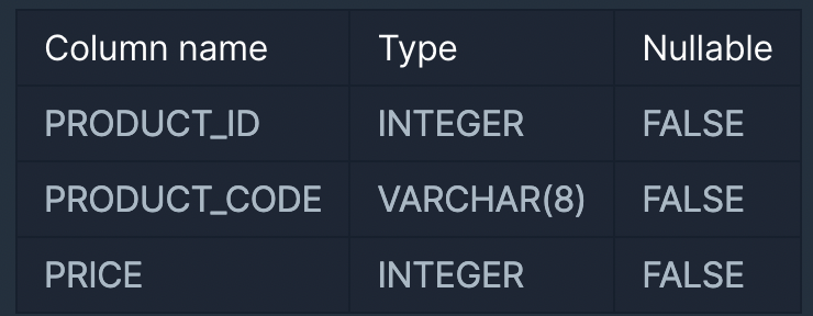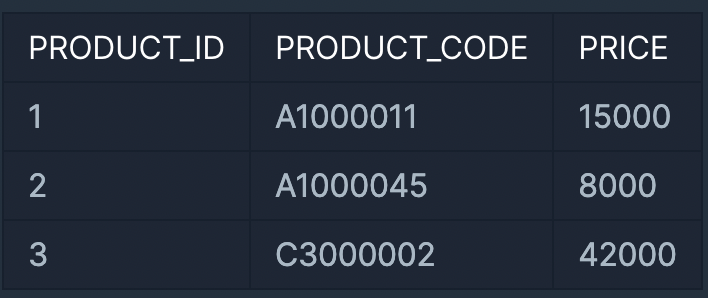 예를 들어 PRODUCT 테이블이 다음과 같고