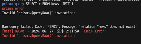 $queryRaw 를 사용했더니 테이블을 찾을 수 없다는 오류가 발생해서