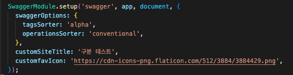 customSiteTitle?: string; // Swagger 페이지의 HTML title 값 (브라우저 탭 제목)